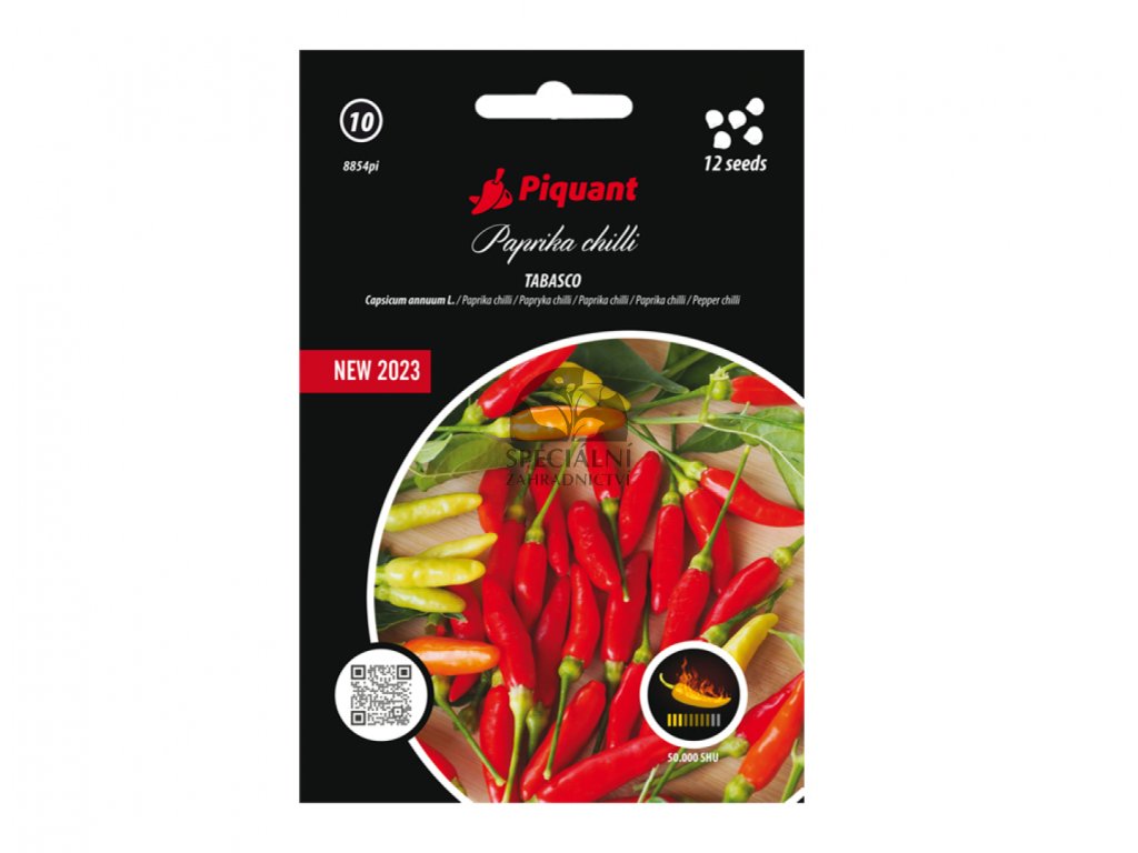 Chilli paprička Tabasco (Capsicum frutescens) je okrasná a velmi produktivní odrůda s drobnými, šťavnatými plody rostoucími vzpřímeně. Dozrává do jasně červené barvy a dosahuje pálivosti 30 000–50 000 SHU. Rostliny jsou kompaktní, vhodné pro pěstování v krytech i v nádobách. Plody mají čistou, pronikavou pálivost a skvěle se hodí na fermentace, omáčky, salsy i sušení. Balení: 12 semen.