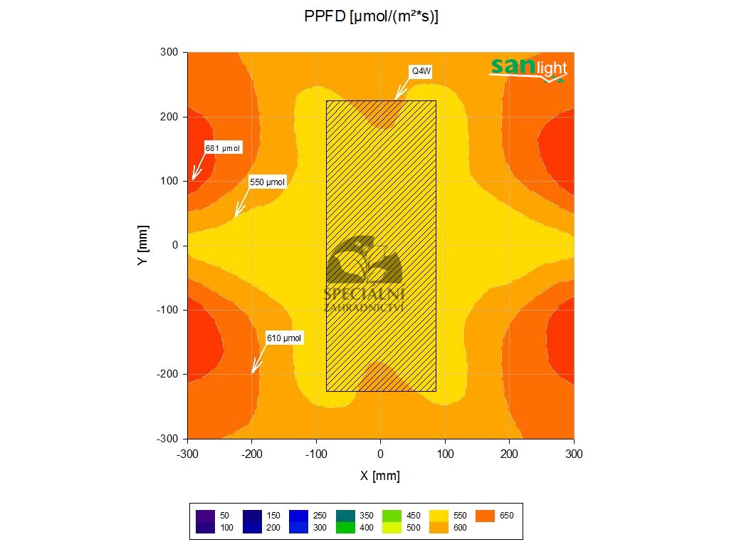 Budoucnost patří LED světlům a kdo nevěří, uvěří až vyzkouší SANlight Q4W, což je závěsné LED osvětlení se čtyřmi světelnými panely, celkovou délkou 49 cm a příkonem 150W. Světla lze jednoduše propojovat mezi sebou, takže stačí jeden přívodní kabel pro až 7 světel. Proto není přívodní kabel součástí balení a musíte si ho zvolit níže. Použitelné samostatně pro prostory 60x60cm až 80x80cm. Světelné spektrum je vhodné jak pro růst, tak pro květ. Díky pasivní chlazení je produkt zcela tichý,již žádné hučení z boxu. Velmi dlouhá životnost ( 9 let nonstop provozu) Vám vykompenzuje relativně vyšší náklady oproti výbojkám. Vhodné pro domácí i profesionální využití.