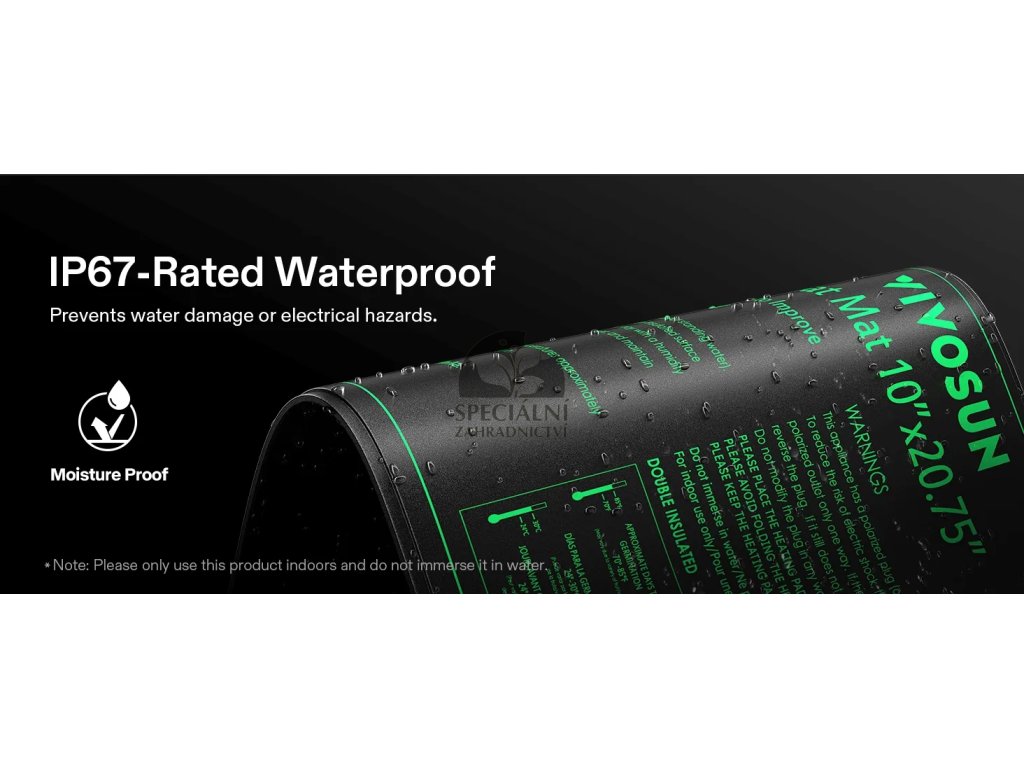 VIVOSUN výhřevná podložka o rozměrech 25 × 52 cm je navržena pro rychlé a rovnoměrné zahřívání substrátu při klíčení semen a pěstování mladých rostlin. Díky výkonu 20 W poskytuje stabilní teplotu po celé ploše rohože a podporuje rychlejší, rovnoměrnější a spolehlivější start růstu.