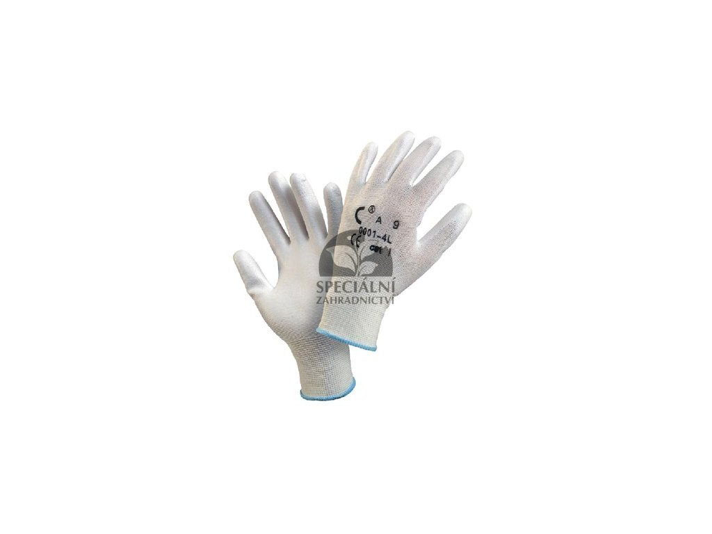 Pracovní ochranné rukavice slouží k ochraně rukou před poraněním a znečištěním, při práci na zahrádce. Rukavice jsou vyrobené z nylonu, bezešvým úpletem a mají prsty i dlaně máčené v polyuretanu, čímž jsou částečně nepropustné. Neobsahují silikon. 2ks v balení. Barva: bílá.