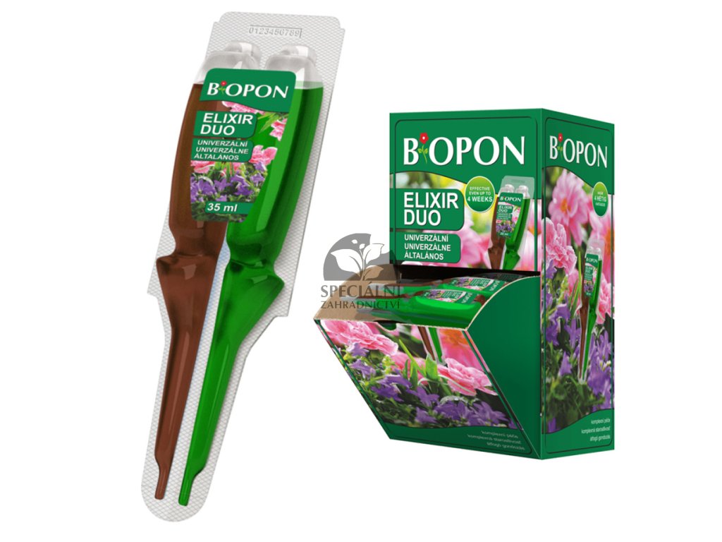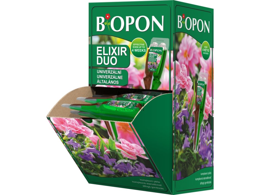 BOPON Elixír Duo nabízí cílené dávkování živin a regeneračních látek, které se smíchají až v půdě. Tím se zajišťuje lepší vstřebávání a delší účinek bez nutnosti pravidelného ředění. Doporučuje se zejména u rostlin s pomalým růstem, nedostatečným kvetením či oslabeným kořenovým systémem, ale lze ho používat i preventivně u zdravých orchidejí. Odlomte špičku aplikátoru a vložte jej do zeminy. Nechte působit až 4 týdny.